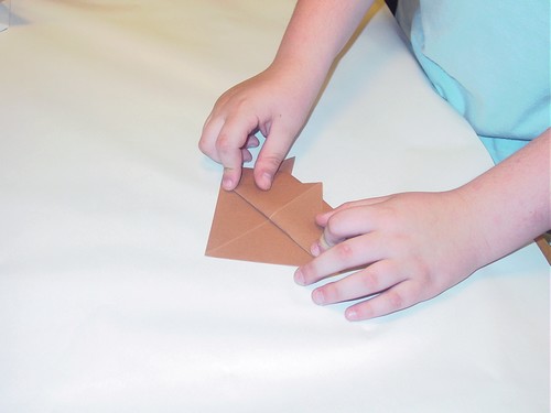 Rabattre la première pointe du bas vers le haut de façon qu'elle