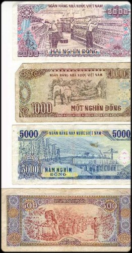 3. l'électricité (7%) Le fleuve Mékong permet aux laos de produire de l'électricité (hydroélectricité). Ils en exportent vers la Thaïlande. Ils ont construit quatre barrages le long du Mékong, mais aussi sur la rivière Nâm Ngum, ce qui a immergé une zone importante. 4. le café (6%) Il est cultivé sur le plateau des Boloven (au sud), car c'est une zone très pluvieuse. On retrouve tous ces éléments sur les billets vietnamiens (en dôngs), ce qui nous fait penser que ces deux pays ont beaucoup de points communs. |